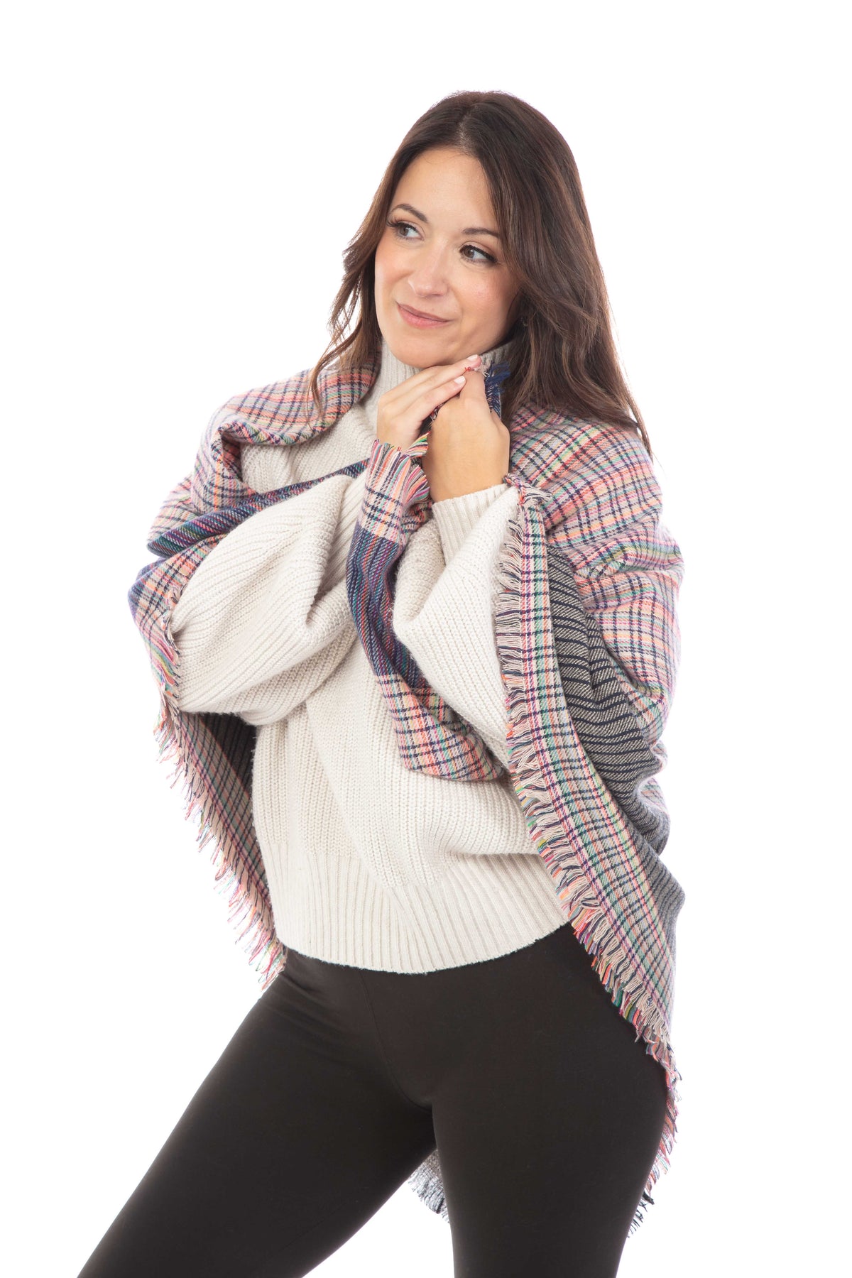 Just Cozy up with these luxurious blanket scarves. Soft, warm and versatile to keep you looking chic this winter season. Wrap up in this blanket scarf and add a little extra warmth and style to your look. A cozy accessory made with soft fabric for comfortable wear. Perfect for the Fall/Winter weather. Dimensions: 55" long and 54" wide. Size may vary within 2".